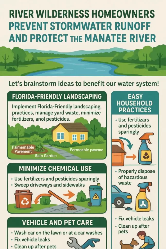 Get tough! Active Call to Action for River Wilderness Homeowners and their stormwater. We all love clean, beautiful water—and let’s be honest, polluting it is just gross. Every drop that flows from our neighborhood eventually reaches the Manatee River, one of Parrish’s most treasured natural resources.